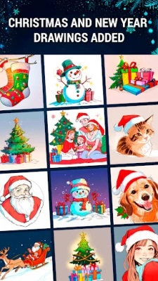 - Christmas and New Year drawings: trees, snowmen, gifts, Santa Claus and other holiday sketches...