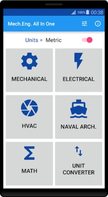 The application includes various reference tables, calculators, converters. It also has one of the most comprehensive unit converter in the market. All of the tools have both Metric (SI) and Imperial (US) units.